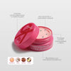 - Contiene manteca de cacao, karité, extracto de cúrcuma, camelia, manzanilla, salvia, vitamina E, jojoba, ester de oliva, ácido oleico y cera de arroz.